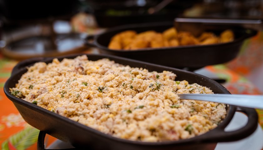A farinha de mandioca é um acompanhamento comum, mas a farinha produzida em Uarini, no Amazonas, é especialmente apreciada por sua textura e sabor distintos.